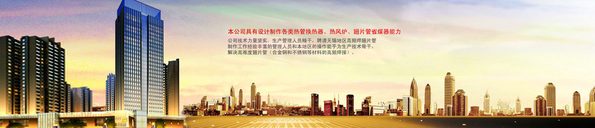 ???????無錫市新寶紅換熱器有限公司位于美麗的太湖之濱,是一家專業生產翅片管,翅片管換熱器,高頻焊螺旋翅片管,熱管式換熱器的廠家。